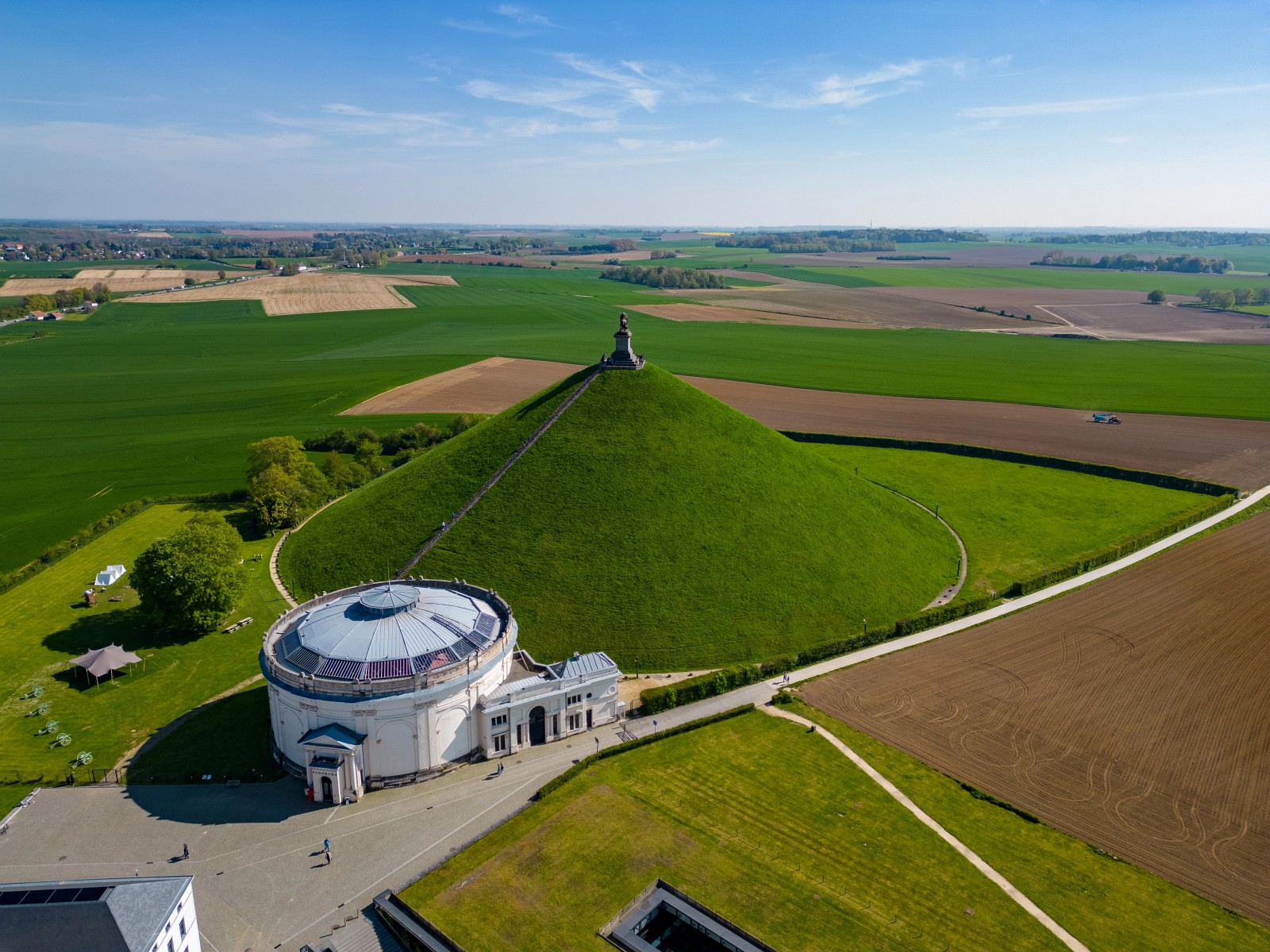 Le meilleur point de vue pour admirer le champ de bataille d’en haut est le sommet de la Butte du Lion, une petite colline artificielle au sommet de laquelle trône l’énorme statue d’un lion.